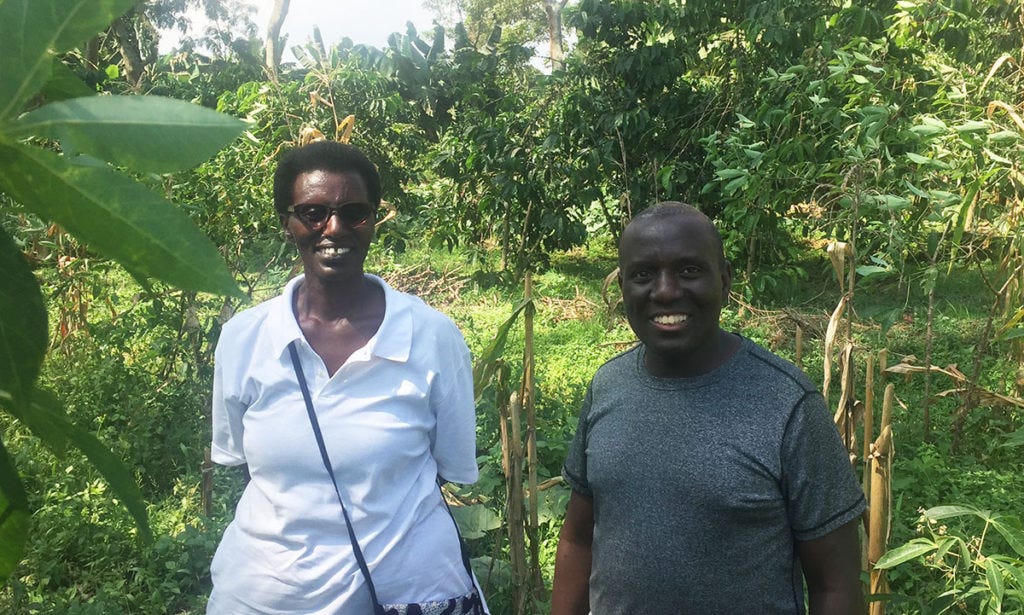 "Even if you're growing matooke (plantains)," he adds, still playing the role of coffee promoter to Justine, "coffee will help you to diversify your income."