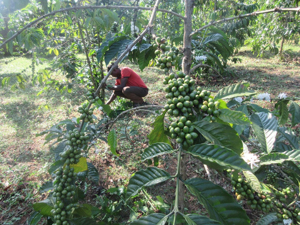 The smaller of the two gardens, the Kitende plot is well watered which ensures that the coffee is able to flower and bear fruit pretty much all year round. Drainage channels have been dug to prevent water logging.